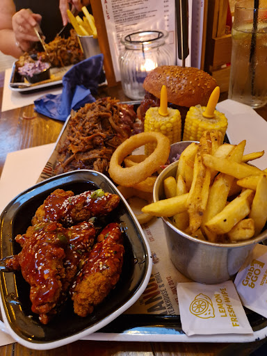Read moreThis restaurant is absolutely fantastic from the decor to the staff to the absolutely fantastic food. We arrived for our date night a little early was greeted by a friendly gentleman behind the bar who told our table wasn't quite ready so we had a drink at the bar. My wife's eyes lit up at the cocktail menu. Drinks ordered and within a few minutes our table was ready off we went the decor in this place so fits the style of food they are selling there are bull horns on the walls retro coke advertising. Sat at our table now the hard part what to order everything on the menu sounded fantastic we chose our starters (we ordered 4) Chili and garlic prawns 5* Beef burnt ends 5* Onion rings 5* Chicken wings with bourbon bbq 5* These came with your choice of sauces we chose. Buffalo,Bourbon BBQ & Chili bacon jam which is made inhouse is absolutely fantastic that they should sell it in jars. Main course my wife ordered full rack of ribs with beef brisket rustic fries and in-house coleslaw (coleslaw was OMG) I order the back yard bbq which does state good to share or for those that are hungry well you'd have to be starving to finish it 1/2 rack of ribs I chose to brisket on top of it (there are others chooses) 6 southern fried chicken strips Onion rings 2 mini corn on the cob And a double cheese burger To say everything we ordered was delicious would be an understatement this is a gem of a restaurant in the most unassuming location in Lincolnshire. I would advise booking as they turned 3 tables away whilst we were waiting. We will...