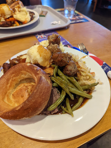 The service was great, the waitress was able to check about allergies for me, as my daughter has numerous allergies and intolerances that weren't listed on the allergen menu. Ordering is at the bar, and was straight forward, although it would have been easier to order food and drinks as one, instead of separately. Food arrived promptly and freshly cooked/hot. For the style of food (think Brewers Fayre etc) it was really tasty, the chicken burger had a nice crunch to it, the burger was juicy and the sausage and mash was really good. My only preference would have been branded sauces, as the off brand version used tasted very vinegar-like (both mayo and ketchup).