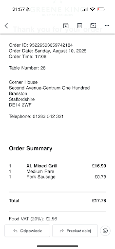 I visited your restaurant today and ordered the mixed grill. Unfortunately, I was very disappointed because the steak came out medium well. When a waitress came over to ask if everything was okay, I told her it wasn’t – that the steak was medium well. She responded by saying it was “more like medium,” in a way that made it seem like she knew better than me. It felt strange and a bit dismissive.
