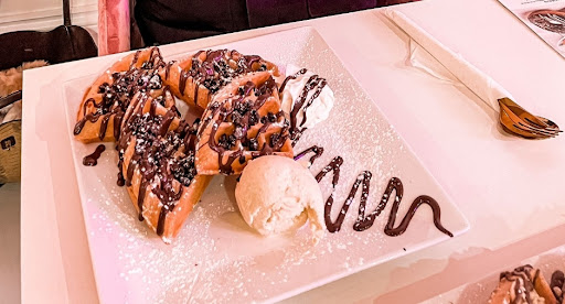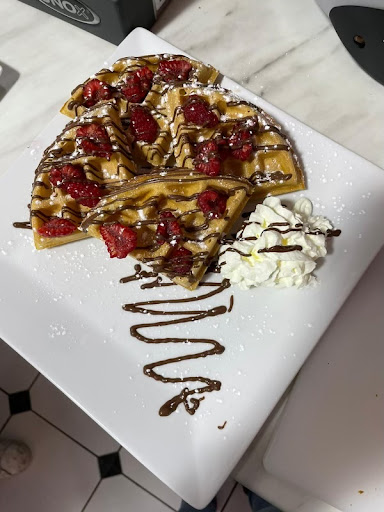When we got home the waffle was missing the strawberries it was supposed to have and only had banana and chocolate, it was crunchy not even crispy on the edges and undercooked in the middle, disappointing for the price and time we waited.