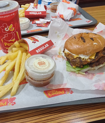 We paid over £25 for two meals with no fries small drink and small corn on the cob it would have been cheaper to eat in at Nandos and actually get what we paid for!!!!