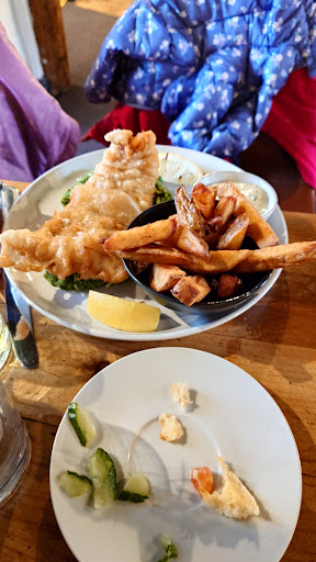 My son, asked for the triple cooked chips instead of fries and I was amazed....actual triple cooked (not cooked once before McCains freeze them and then cooked in two temperatures of oil) Heston style original triple cooked sticks of potato perfection. Honestly this is the first time I've had true triple cooked chips, done as they should be outside of a Michelin starred pub, well done! He ate loads of the proper, homemade battered fresh fish 'fingers' which were more like large fillets and even all the peas!