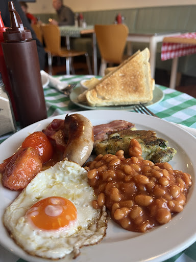 Read moreFirst time visit at the weekend, I was interested because it was away from the main high street which normally means a better experience. I arrived and heard the words delivered to somebody else being served...'they'll be a bit of a wait for food'...ok, the place didn't look busy so I took a chance. I sat on what was described as a table but turned out to be a wooden plank between two outdoor structures, I needed assurance that it was actually a 'table' before I took my seat. Before my order was taken a bottle of water was delivered to the table which was a good sign.... I ordered my breakfast along with a pot of tea.... Thankfully I didn't have to wait too long but two things happened which pointed towards a stretched service. The first thing was the table next to me they had forgotten to serve them any bacon with their breakfasts 🤷🏻♂️... And secondly they forgot to bring my toast. Not a problem, I went into the kitchen just to tell them and got the cook telling me how busy they were before handing me my toast, that had been sitting there waiting to be brought out.... Making me feel bad that I had the cheek to ask 'where was my toast?'... So generally the service and food was good, it wasn't the best breakfast I'd ever had and certainly wasn't the worst.... Was it worth £10, yes it was. I was satisfied with my experience but...