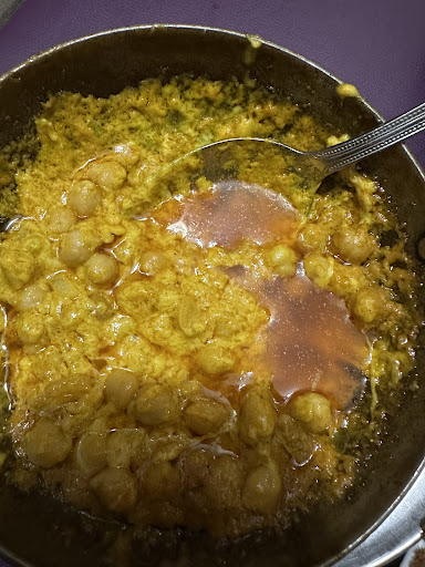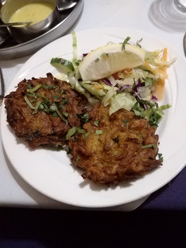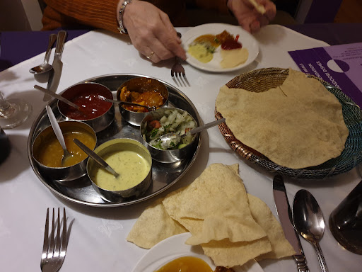 We went to Bombay Nite as a couple for a spontaneous date night and for my partner to try Indian cuisine for the first time.. ordered one large coke each with 4 poppadoms to start. The cokes were slightly warm, but the poppadoms were fine….. we ordered our meal of a chicken korma, chicken tikka masala, egg fried pilau rice, plain pilau rice, saag aloo, Bombay aloo, onion bhajis and a plain naan. The korma was okay, tikka masala was okay, but over cooked chicken, egg fried pilau rice tasted like a microwave pouch not fresh, although the plain pilau was okay. Saag aloo was simply tasteless, bar the salty potatoes, Bombay aloo had the same salty potatoes but the Bombay was also way too salty, we had to order additional glass of coke because of the over saltiness, which took forever to get to our table, Onion bhajis were very nice! Plain naan was okay, but I’ve definitely had better… We were given a complimentary desert which was nice, however we both felt it was overpoweringly creamy.
