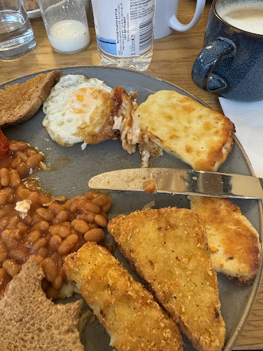 3 veggie breakfast was with poached egg but came with burned fried eggs and overcooked rock hard halloumi. Cold breakfast. No extra halloumi received.