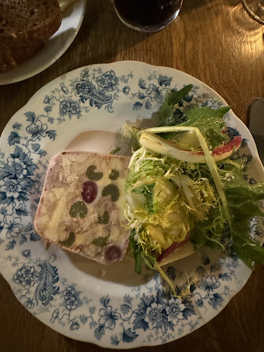 I had the Suffolk Coppa (not sure of the spelling) - anyway, it was slices of ham and as good as anything you can get in Spain. Then deviled kidneys which were rich, tasty and tender in an unctuous and silky sauce followed by strong tasting and crispy hogget chops. The hogget came with sweet sqashes, sweetbreads (maybe from the same sheep) and goats cheese. It was brillliant. My wife had the crab bisque and then some wonderful mushrooms. The chef catered for my gluten intolerance allowing me a very good choice of dishes - just a few things were out of bounds due to relying on toast and other unavoidables.