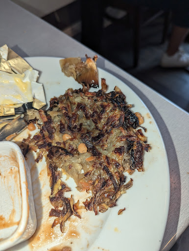 Read moreBeware. The menu says meals are gluten free, but they are NOT, you need to request gluten free. It was very disappointing and potentially harmful. When our food was brought out (2 fried breakfasts) I established that it was not gf as advertised. I hadn't asked at the time of ordering as the menu was so very clear with it's GF in red after the description of a cooked breakfast. When I said that I was gluten free my plate was taken away and a gf breakfast brought out (this was done very nicely). The gf sausage was different and looked very sad and grey compared to my husband's big bangers (although he said they were overcooked and not very nice). It was disappointing as you can get excellent gf sausages. I had 2 eggs, one of which was overcooked with a solid yolk. The gf toast was surprisingly nice. I ordered a hash brown which was awful (see picture). It was greasy, overcooked/very dark brown and under seasoned, with a big chunk of onion, oddly a part of it. It had a closer affinity to a soggy rosti than a hash brown. Staff were friendly and nice. Sadly the food was not good value for money. The menu was totally misleading with regards to allergies and whilst the team swiftly rectified the mistake it meant I didn't eat at the same time as my husband and I could have been in serious pain if I had eaten the...