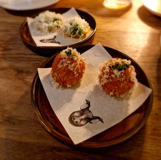 I had a couple of nibbles to start including a pretty tasteless lardo crisp, a duo of oysters which was strange, as the grilled oyster seemed pretty much uncooked and flabby, though the fried one was crunchy and tasty. I was a little bit mystified as to why there were no fresh raw oysters on the menu though, which I would have much preferred.