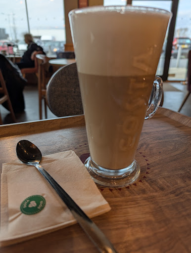 Read moreOrdered using the app, went round the drive-thru to collect (as I have done before) and was told âbear with meâ at the order point where I waited for around 8 minutes before she told me to drive round without asking for my order number. She then told me I had to go inside to collect, which I have never had to do before, and laughed at me when I asked if she could just pass it through. I pointed out that all she had to do was pass it through from the other side and she laughed again and said she had a queue. I said I know, I have been waiting in that queue myself for over 10 minutes. She laughed at me again. When I went inside to collect I joined a huge queue and she laughed at me again and pointed at the door, where my drinks had been left to get warm and melt. Awful customer service! Costa need to teach their staff some manners and respect. Next time I will go...