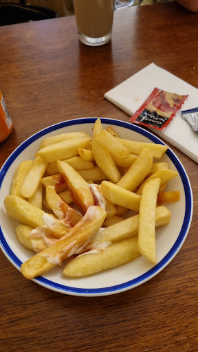 Plenty of seating inside and outside . some of outside is under cover so no worry about seagulls. Wheelchair access. A variety of hot and cold food. Including dinner meals, snacks and desserts. The staff were polite enough. Limited communication. The person who cleared away the plates was very polite. We had small and large breakfasts. The mushrooms were shrivelled , as they look when left in a fridge to long. They didnt taste good. The beans looks like they had been cooking for a long time, smushy. I can tell they are not a branded bean. Hash browns are ok, doesnt taste fried. could have more flavour. The sausages were ok. Bacon cooked well and crispy which i like. Perfect eggs. Standard toast. Overall i enjoyed most of it and the two other people with me said they enjoyed it. All looks very clean and not greasy. I have previously had nice cheese toastie from them which i enjoyed. They have a choice of cold drinks including alcohol. a display with some cakes. Disabled toilet is clean. Located in the town centre so its a perfect stop off. I will be...