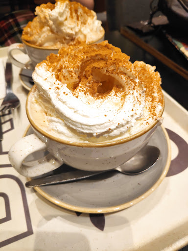 It was okay but I ordered a sausage roll I'm not being funny but carrots in a sausage roll don't think so it didn't taste right either but I told the waitress that I didn't like it am I girlfriend told it too with that cut them in its later gentleman from Beyond account I've got me a free chocolate muffin so as always well but I've fancied a sausage roll why can't they just do normal sausage rolls or indicate that the sausage roll has got certain things in it it had spices in it and I can't eat spiced because I've got a bad stomach from previous stab injury to my stomach so I can't take spicy food so if they stipulate it to add spices in it I wouldn't have actually my milkshake was lovely and my girlfriend's cup of tea was lovely and croissant I think you shouldn't consider marking...