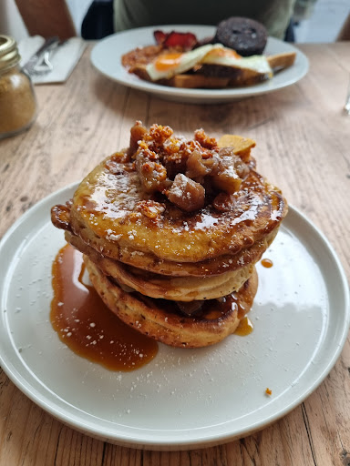 Portions are generous too, to the extent that I only just had enough room to finish the half a pancake that my wife just couldn't manage - which was an altogether different kind of delicious: Thick and fluffy with soft apples, cinnamon, and the genius addition of honeycomb that anyone with a sweet tooth...