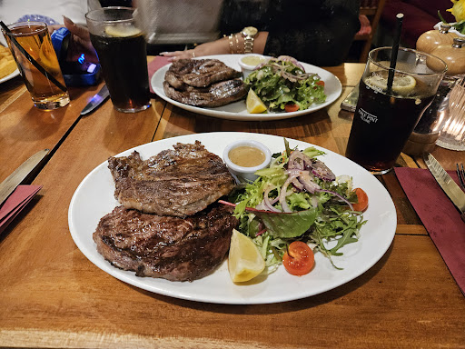 Read moreMyself and a friend decided to go here. He had been there before so he knew it was good. First of all we went to the pub next door which is attached. The EXTREMELY friendly barman in there kept us stocked up on his Long Island Iced Tea while we were awaiting our table. We were shown to our seats by a wonderfully friendly guy who then introduced us to our server who was hands down the happiest person I have ever met. Not only was he upbeat and friendly but he also ensured we had everything we needed throughout the meal. The food itself.... Just WoW!!!!! Steak cooked to perfection (They were a bit tight on the peppercorn sauce but hey ho). Salad (yehhhh thats what you want with a dench steak lol) had a wonderful sweet / tangy dressing and the chips were also very close to perfect!. All in all a great evening. The evening was made by both the environment and the wonderfully happy staff! Not one smile was the wrong way round.... Defo going again!!!! See...