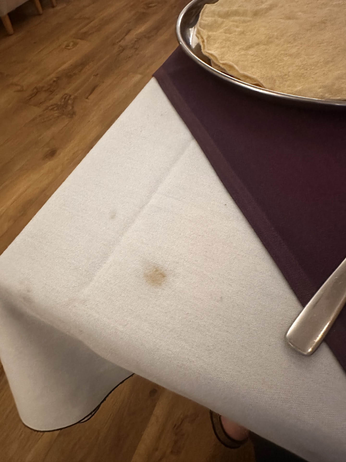 Firstly, the moment we entered, we were greeted by dirty linens and chair covers that clearly hadn’t been cleaned in quite some time. It was off-putting and set a negative tone for the evening. We were surprised to find the restaurant almost empty on a Friday night, which should have been a red flag. Yet, we were seated next to a family with three small children, which made the atmosphere even more chaotic and uncomfortable.