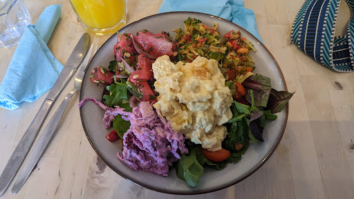 Went for breakfast with a friend. Looks lovely, lots of lovely food on offer, pretty busy as well for a midweek morning. We ordered at the tills, the food was very nice, the service though?! What happened? It seemed that they didn’t really want us there tbh, couldn’t have hurt to smile, surely. I honestly don’t know if I would go again or recommend it. I would for the food and general look/feel of the place but not if the staff act like they don’t want us there. Also they do cover intolerances well although they charged 40p for different types of milk (except soya). My friend had oat milk and was given a tiny amount so asked for more and was given the carton. Also, I had a bottled drink from the fridge and wasn’t offered a glass, although some were stacked nearby so I just took one. It felt like the sort of place they would offer better service usually (also with the kind of cost where you expect...