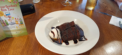 We were “greeted” by the new landlady, Teressa, barking at us that we couldn’t go into the usual eating end of the pub with our dog... this was surprising, given that we’ve sat there with him as recently as the week before and members of staff had even come to pet him. Having spoken at us and stalked off, the landlady then left an embarrassed and clearly uncomfortable young waitress to try to help. We should have taken the hint and left at that point, but we were hungry, so were forced us to sit under a giant tv, with imbecilic football commentary so loud that we had to shout at each other to be heard. The waitress did manage to get it turned down eventually- not her fault, there was far too much for one person to do. The football customers are clearly a hardy breed and are used to the freezing temperatures at their end of the pub... but we were hungry. There was a 30minute wait for food, which was also surprising, given that most tables already seemed to have been served...being hungry and with little alternative we decided to wait. One of the meals we ordered turned out not to be available - sadly the stock position hadn’t reached the till, so the poor waitress had to let us know that we needed to re-order. Fortunately for us the food did arrive just before hyperthermia and actually looked ok - ok, there were two eggs with the gammon instead of one egg and one pineapple ring and one piece of fish was much more cooked than the other, but that’s the sort of error that can be forgiven. Less forgivable was the long black hair that one of us found in fish batter near the end of the meal...bon appetite! Once again a difficult conversation with the clearly very beleaguered waitress while the landlady again pointedly stayed away and took zero responsibility. The cost of that meal was taken off the bill, but it was an empty gesture as it meant we lost the advantage of a deal and paid almost the same. We declined the offer of a free desert because one desert between four people isn’t really enough and anyway we just wanted to leave. Even when we left there was no apology or even an acknowledgement from the landlady, although she was happy enough to let us pay for the miserable experience. We just left and felt sorry for the waitress who was still stuck there.