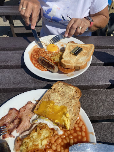 Read moreWhat a lovely gem of a place, right alongside the river next to the jetty area. Stopped here twice now while in the area and couldnât fault the food or service, we ordered online and the drinks came quite quickly followed by the food which was really nicely cooked and presented. Luckily both times we stopped here the weather was nice sunshine so sat in the upper section which have good views out to the river. Relaxed atmosphere and didnât feel rushed at all., seating on the roof section is wooden benches (picnic table type) and the ones on the ground floor restaurant area are mainly tube framed tube type tables and chairs which go well in the area and feels like a marine type place. Prices for the lighter breakfast is not overly priced at ÂŁ8- considering the quality and service The full English I saw certainly would help fill the hungry bears in your family. .