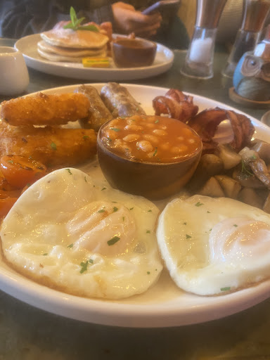 Now the food...complements to the chef! We had 2 veggie breakfasts (in the afternoon- love all day breakfasts)- we wiped them out quickly. Generous portions and loved that the mushrooms were small and crispy (not the usual sogginess you find usually) and the tomatoes were small (again not the usual whole squidgy tomatos).
