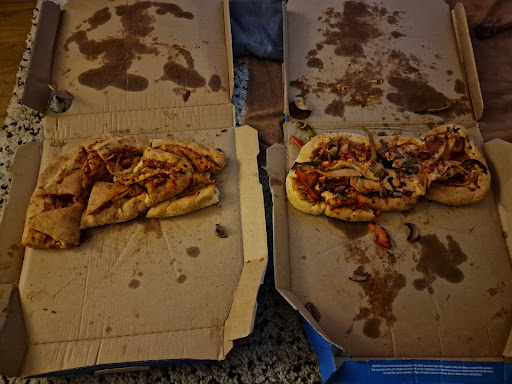 Read moreThis place is an absolute disgrace . We keep using this place hoping it will improve but it just keeps getting worse so I've now decided to write a review in the hope that someone with an ounce of customer service will try and rectify this dump before it's too late . The last 3 times we have used Dominos weybridge we have hadcs problem . 1st Time pizza took 2.5 hours to deliver when i pjoned kept being told it's on its way driver is new . Called roughly 6 times always sameexcuse and when pizza Sid arrive order was wrong . Promised free pizza next time we ordered. 2nd time pizza was stone cold and looked like it had been dropped . Told duty manager that we were meant to have free pizza she said that there was no note to say that was the case and apologised about cold pizza but said they had been busy . ( don't know how ) . Ordered pizza tonight it was like eating a stone cold bit of overcooked toast , hardly any topping even though we asked for extra cheese on both it was inedible. Can't see the point in complaining because they don't give a damn . Will not be going back your an embarrassment to the world of...