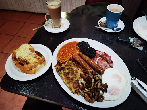 If you're in the mood for a breakfast swimming in grease, this is the place for you. We ordered two breakfasts, and every element was a masterpiece of poor execution. Bacon that tasted off, black pudding resembling a hockey puck, crunchy sausages (yes, crunchy), and hash browns dripping with oil. The mushrooms were a greasy swamp, and the toast? A limp, soggy afterthought. Truly vile.