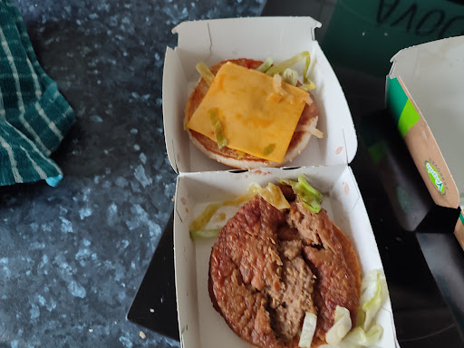 The food was okay but I was shocked that the tables were not being cleaned as soon as someone left ,I cleaned my own table with my own antibacterial wipes. As I was eating my lunch a deliveroo employee sat on the table behind me and hit me with her enormous bag so I moved to the other side of the table. I observed her on her phone clicking away on her extremely cracked screen, she looked grumpy and her bicycle helmet was dirty . She got up to collect her food delivery's and she didn't sanitise her hands, none of the deliveroo employee's did, disgusting and one of the people putting the food into the bags behind the counter didn't have her mask on properly. I won't be eating McDonald's again ,they really need to up their cleanliness and make everyone sanitise if delivering food, I did mention this to a member of staff and she said they did but my observations that day showed that no-one did. We still need to be careful and aware of what has happened over the last year or so. Keep an eye on deliveroo hygiene in general, I see them smoking, eating and touching their face and they pick up your food without washing or sanitising their...