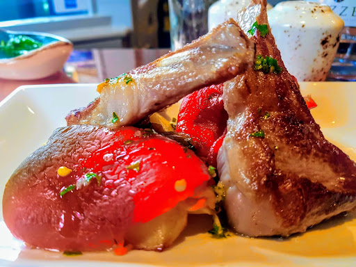The interior is inviting and beautifully presented with a small table outside and nine small table in the front of the restaurant. While the food is imaginatively described and presented, it lacks quality and the distinctive Spanish full flavoured dishes. The Iberian Pork Secret was overly fatty and overcooked, accompanied with an undistinctive sauce. The arroz caldoso was drowned in oil and while the portion was generous the baby squid was chewy. Los Pollos Amigos - chicken breast with machengo cheese, spinach and mushroom was bland. The chorizo croquettes were dry and lacked any seasoning. The only dish I would order again would the lamb chops which were well cooked and complemented with red pimentos. The average cost per dish ranges between £7.50 and £10.50.
