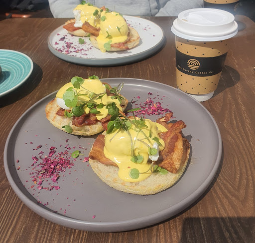 There are many things to love about The Surrey Coffee Company. Starting with the drinks, coffees are offered with a variety of milk / milk alternatives, and they have processes in place to cater for allergies, so I know that I can have my preference of oat milk, and it will be steamed /foamed in a different jug to that used with almond milk.