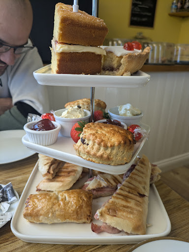 Found this place by chance on the net and so glad that we did. There has not been a birthday for my husband without an afternoon tea, and this one was the best yet. We chose panini's to start, sausage roll, scones and a slice of cake with two pots of tea, all for just ÂŁ30 total and all made fresh. The service was amazing with a very friendly helpful lady (we are sorry we did not take your name) you made us feel so welcome at a very busy period for you. The afternoon tea came out with the staff singing happy birthday and they had put a candle in my husband's cake. These little things all make the difference. All in all we loved our visit, for the service atmosphere and the food. What a lovely charming place....