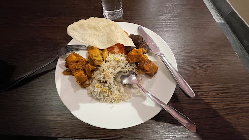 Very impressed. Not perfect. But impressive. A very good selection of Indian food. Thai food was minimal but tasty. A few suggestions . Onion bhaji needs flavour. Texture was spot on but no flavour. Pesweri nan was tasty. But raw. Check there cooked. 2 Indian dessert was a bonus. I luv gulab . Deff shop bought. But a rather good one taste like the one I buy in masalla bazaar. Next. The one lamb curry had quite a lot of chicken in it. Meat samosa was lovely. Maybe a few little dishes but the sauces. I went to ice cream machine for bowl to add some mint sauce to take to table. Over all my experience was above standard. Staff very attentive . One went and warmed me up a gulab jamon instead of the chilled ones 14.95 plus drinks Will deff return. Take on board my comments And impress...