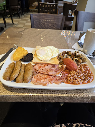 Lovely cafe, you can create your own breakfast from the 24 different offerings on the menu, there are the lighter breakfast choices for smaller appetites, the most expensive breakfast are £9.95 which include tea/filtered coffee, there is also a extensive lunch menu, which is served after 11am, with a desert and drinks(non and alcoholic of which I will review next time, the service is very quick, staff are very polite and the chefs are magnificent well done everyone, Suzanne's 5 🌟seal...