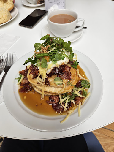 I had the best American pancakes, with maple syrup, the crispiest bacon, cheese and egg. It was absolutely divine and every bite was delicious. Great range of food and drinks for all.