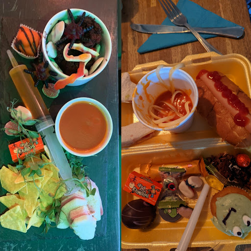 Read moreWe came last year for the Halloween afternoon tea and the Christmas one also. The kids loved it!!! So we thought we would book again. The photos they put on Facebook looked amazing again!!! but this year was a bit of a let down unfortunately, it was no where near as good, the milkshake was just warm coloured milk that the kids didn't drink. The soup with noodles were cold, the sweets and chocolate bar were from multipacks from lidl. Quarter of a ham sandwich and quarter of a jam one, a hot dog and then a crushed up Oreo biscuit served in a takeaway box. Last year it was served beautifully on a slate. I ordered the chilli garlic burger and chips but the chips were greasy and the burger was dry and really small. Such a shame as last year was a huge hit. The girl who served us was really lovely hence the 2* we unfortunately won't be returning for the Christmas one as we think it's going to be similar. I mentioned on Facebook that it was not the same and my comment was deleted. Picture on the left is last year's, the right...