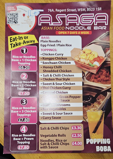 Had a noodle box with 3 toppings, you can mix noodles with rice and chips if you choose or have each one on its own, there not many options to choose from as a choice of two sauces with the noodles one being curry, only toppings available are chicken based along with prawns at a extra cost, although there is a choice of mushrooms and beansprouts, so once you picked one of those don't really want to mix chicken blackbean sauce with a chicken sweet sour sauce get the idea, there are some other chicken type items such as chillie or honey chicken bites, anyway the food itself is absolutely delicious large portions and great value for money, place is clean and tidy, with a few tables at the back of you want to eat in would recommend if you like chicken and noodles. 4 stars for food due to lack of choice not taste, 4 stars for service as the server took a long time to understand our order, 3 stars for atmosphere as the place it just a...