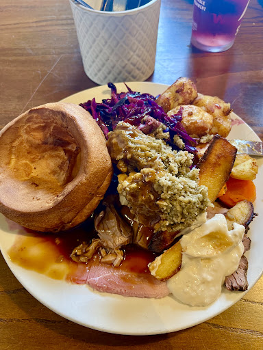 When we got seated at the table, you encourage people to download the app to order, so we did. This is where the problem started. Everything was OK up to the point where it asks for table number. There was no table number where we were sat. Out of the other 4 tables around us, only 1 had a number. The waitress informed us of the number and proceeded with the order. After about 20 mins, 2 of the mains came out as the other 2 were carvery. We said to the waitress we were still waiting for our drinks, to which she replied she will have a look. When we got to the carvery queue we could see our drinks on the bar. Also the carvery only had gammon which I wasn't expecting. According to the carver, that's all they had. After getting back to the table just under 10 mins later, the drinks were still sitting on the bar, so we got them ourselves. We ordered another drink through the app, and the same thing happened, we had to get it ourselves. We mentioned this to the waitress and she said someone isn't doing their job right. For dessert, we ordered at the bar this time. 20 mins later, we asked the waitress where they were, and she said they were being done now. Another 20 mins passed before they came out.