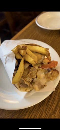 Late lunch with my husband today. I had mixed souvlaki ( chicken skewer, pork skewer) came with chips, salad, dip, and warm fresh bread....absolutely top drawer!! Husband had a mixed grill...all the meats and rice and salad...very, very good!!! Service was excellent too....we'll definitely be back 9/10. Give it a try...you won't be disappointed 😉 Alcoholic drinks are a little expensive though so be warned, buy excellent food. Thank you...