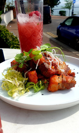 We both had the specials on the menu- Sea bream and pork tomahawk Once our mains arrived I was surprised to see the whole fish on my plate, (which Iâve not experienced before ) It really put me off and so I cut the head off The fillets were still very much intact, I called over the waiter and I mentioned I would like the fish cut into fillets and presented so it was easier to eat Instead of taking my plate away he took my knife and folk and span the plate round to cut the fish in half He did this in such a rush that he cut the tail off and it shot across the tablet onto the floor. He then swiftly walked off ! I was shocked to be honest and the female waitress come over to see if I was ok I explained how disappointed I was that he did this infront of me and didnât just take my plate away to prepare the fish how i had politely asked. She explained she could swap the food but I didnât want to be eating separately to my partner who had started his food Shortly after the guy walked past again and made eye contact, I said I was disappointed again that some of the fish went on the floor, he smirked, shrugged his shoulders and said âsorry!â