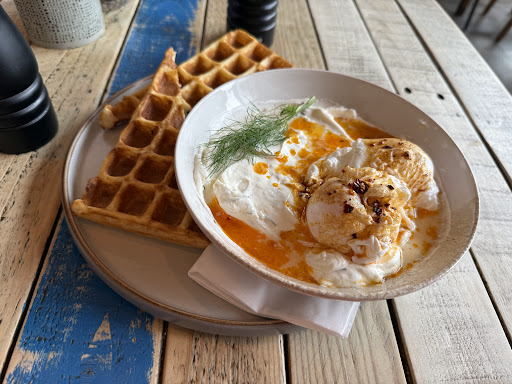 Read moreI can confidently say that (taste wise) lots of places in York don’t correspond to the quality of the food. This one is one of them. It was impossible to finish the food. It’s “Turkish eggs” with a very strong garlic influence on yogurt (totally not pleasurable to eat). The waffles were sweet, salty and with a strong baking soda taste. All in all the chef does not have a clue how to balance the simplest dishes. What a shame.16£ for a meal you feel bad afterwards.
