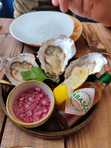 Let’s start with the food. The Bread was very nice but didn’t come with anywhere enough olive oil. The mackerel was fantastic. The deep fried oysters are a must. The deep fried courgette flower in honey was amazing. The Ganard fish was just sublime and the T bone steak perfectly cooked. Beetroot dip was interesting but I wouldn’t order again. Sides in general were lovely.