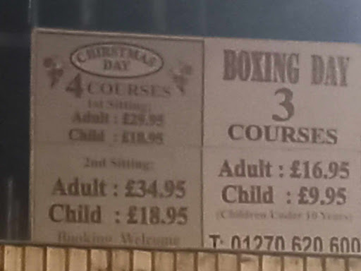 Read moreBooked in October after our shop in aldi which is next door, we saw a banner hanging outside the premises for christmas day and boxing day, we booked for the boxing day offer which was advertised for £16.95 per person. When we went on boxing day at the time we booked we were given a menu, we were a bit confused so asked for the boxing day offer, we were offered the buffet, when the bill arrived it equated to just under £25 per person, we questioned it, they denied all knowledge of the boxing day offer saying the £16.95 started next week, we always get our take aways from here but wont be gracing them with our...