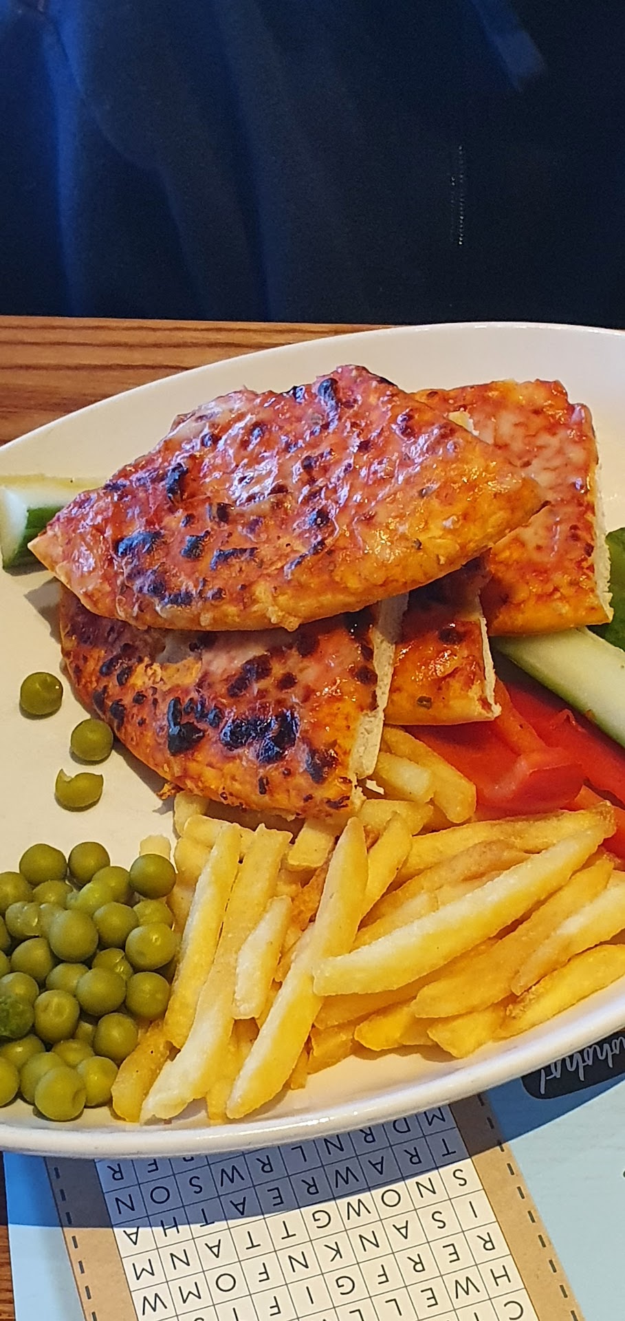 Prawn cocktail with toasted chiabata, was ordered. We recieved: 12 prawns on a bed of chunks of cucumber with a sliver of shredded lettuce, served with one medium slice of white loaf (toast bread?), stale, with two unspreadable packs of butter. Toped with a tablespoon of marie-rose sauce and a dusting of paprika? Double crispy chicken wing starter with bbq sauce. We recieved: 4 overcooked crispy chicken wings, lost in a bowl, no garnish (peppers, salad were in the photo) just 4 small overcooked wings in a large bowl with a basic barbecue sauce. Nearly inedible.