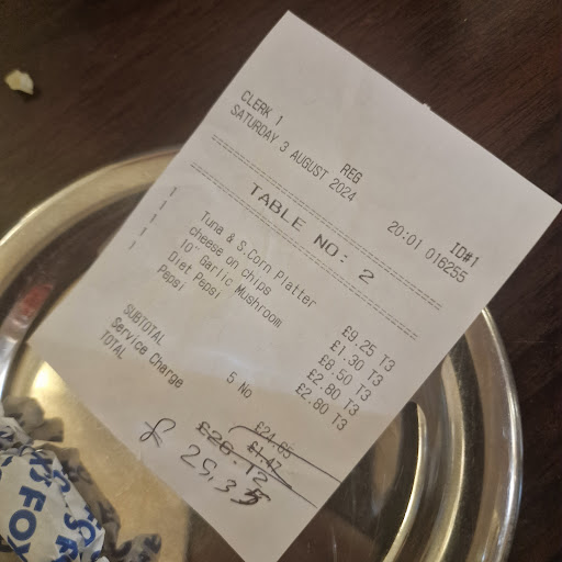 I asked for garlic bread which the menu said was baked fresh in the kitchen and it came out on a frozen pizza base, covered in grease and swimming in the really watery tomato sauce they have.... Needless to say I never ate that and it went back and was removed from my bill.