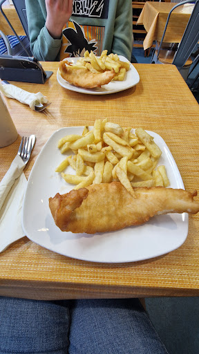 Saw some glowing online reviews of this establishment. Had been named as one of the best fish and chips shops in Lancashire so decided to give it a visit. Managed to find a space right outside on the road. Please note many of the streets around here are resident permit parking only. Seriously doubt you would get a space like we did in the summer months. However, there are a number of pay and display car parks close by for when it’s busy. We were there just after noon on a very wet November day and Blackpool looked very quiet. There is a ramp up into the shop providing wheel chair access. Place was a lot bigger inside than it initially looked with a number of tables and I would reckon seating inside for at least 30 or more people. That’s just an estimate, I didn’t actually count the number of chairs. Plus seating outside for the warmer months. You made your choice, took your table number to the counter and placed your order. Not the most extensive menu. Standard fare for a traditional fish and chip shop. Initially a little surprised to see no desserts on the dine in menu. We went with the large fish and chips, small peas and curry sauce and a medium fish and chips, bread and butter, one coffee and a bottle of water. Didn’t take long before our order was cooked and brought to our table. It was piping hot. Have to say I thought the chips were excellent. Proper full chips, freshly cooked with very few bits. Fish was good. The large was a big portion. I liked the peas but the curry sauce wasn’t for me. Wasn’t keen on it but that’s just my personal preference. Bread and butter also good and fresh and didn’t feel or taste like it had been sat around for hours waiting to be served up. Salt, pepper and vinegar in proper containers on each table with tomato and brown sauce as well. Not the fiddly little individual packets that some places unfortunately insist on using these days. Based on taste and size of portions felt it was reasonable value for money. And probably one reason why they have no dessert menu as we would not have had room for any more. The place looked very clean and tidy. The staff working behind the counter also looked smart in clean white tunics. My brother used the toilet. They had 2. One appeared to be disabled friendly and a sign posted to say it had changing facilities for babies. He said the one he used was also very clean. The food was good but not anything we have not enjoyed before. The service wasn’t the friendliest. My brother who took our order to the till felt the guy who took it was a little abrupt but then again it’s not a five star restaurant is it. So although there was nothing wrong with our meal maybe we were expecting a little bit more having seen the online reviews. Was worth checking out but due to distance from where we live, it’s over an hours drive, it’s unlikely we will be...
