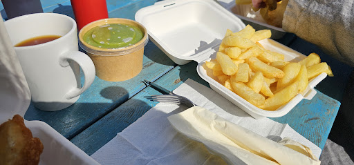 Read moreWe traveled from Edinburgh and looked for a highly recommended chippy on Google and came across this one . We walked from the main area which took roughly 30 mins and arrived at 6pm. The cafe is clean and has a good amount of seating and tables,also some out side. And two customer toilets, clean. I ordered at the counter and the food was brought out to us within 15 mins. The children went for the kids fish and chips, which includes a small side of baked beans and a fruit shot for £6.50. I went with the small fish and chips £7, husband decided to have the medium fish at £7 and add 2 potato scallops at 50p each. The fish was fresh and had a nice big flake texture. The batter was thin and light. But it was let down with the underside being soggy. Not sure what caused this, perhaps not allowing it to rest before plating it up? Found there wasn't a huge difference in my small fish and my husband medium fish. The portions were generous. Chips lightly fried and soft, not greasy. It was good that the tables had vinegar, ketchup , brown sauce, and sachets of mayo and tartar sauce. Overall a pleasant experience here. The menu is same price for sitting in...