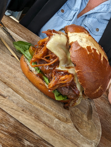 The food arrived in a good time considering how busy it was. My partner ordered the pulled pork burger, which was a juicy patty topped with pulled pork and cheese, with a side of upgraded fries to sweet potato fries. I ordered my favourite burger and one I have been wanting for a while, the blue cheese burger, I upgraded my fries to truffle and parmesan fries. Both burgers were served in a roasted pretzel bun with lettuce and tomato and onion and the bread was sauced really well. My only criticism would be my burger needed more crunch (I didn't ask if the restaurant should have added bacon). The truffle fries were nothing other than delicious. I would say this meal would be in my top 5 burgers.