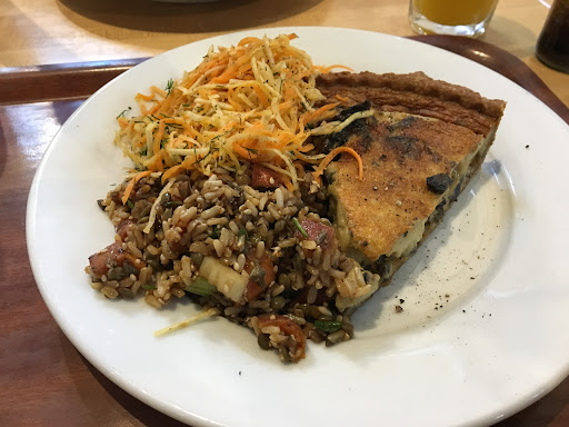 Read moreNice atmosphere in All Saint's at the centre of Hereford. The cafe can seat about 50 with at tables the floor level and up a set of stairs on a raised platform under the church roof. The food was a good selection of wholesome and healthy dishes. I had a very tasty quiche with some excellent side sofas and a wonderfully tasty slice of wholemeal bread. The food is freshly cooked, appetising and well flavoured. I had a Latte to accompany the food and this was also very tasty. The staff are clearly enthusiasts for simple but well cooked food, definitely worth a visit.