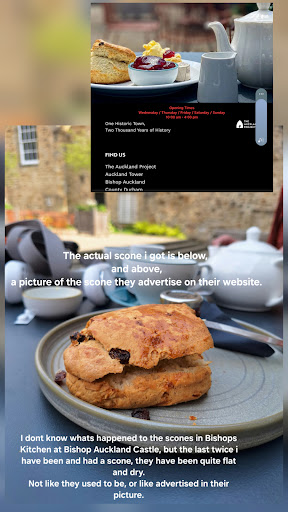 Read moreBeautifully presented and very well kept cafe within Auckland palace available to all. The courtyard is a lovely place to sit but only if you like dogs, lots of them. The menu is not badly priced and the food is definitely fresh. We had cheese scone and carrot cake. The scone came with butter and chutney, well presented and a generous size. It was nicely warmed but the texture was rather doughy and could do with a bit more cheese. The cake was moist and delicious. We had regular and decaf flat white, just the right temperature and lovely latte art. The regular was strong enough but the decaf was lacking in flavour which is a shame given there are lots of good decaf roasts around. Staff were friendly and well intended although they could have cleared tables as they walked back to the...