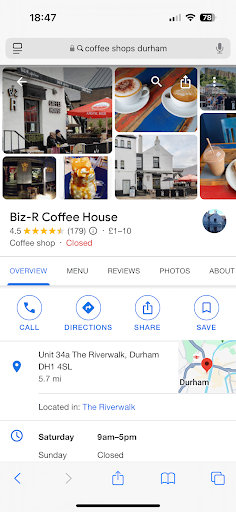 Durham today was really busy and all the coffee shops were heavingā¦. Maybe Biz-R donāt need the custom and if thatās the case good luck to you but I would have thought thatās not the case and to turn customers away 20 mins prior to closing on a lovely Saturday afternoon on the lead up to the colder months when I would imagine custom is slower - to me was crazy.