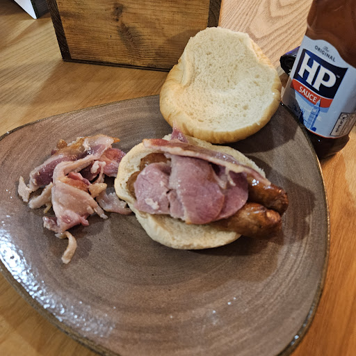 Ordered a sausage sandwich at 09:05 this morning, already a few tables in who had ordered. £8.95 for a sausage sandwich and a Pepsi max. A bit steep i thought but its a parkdene thing and was half expected. A lad in black (cook i suppose) stumbled in at twenty past nine looking half baked, breakfasts started to emerge at 0935. My food finally came out at 0945, it was wrong, but took it anyways as the young waiter didn't know what day if the week it was, couldn't be bothered to complain I mean whats the point? So this was the mess I was served for the best part of a tenner and it took 45 minutes to appear, i didnt order bacon, the food was foul, and the price around the twist really.