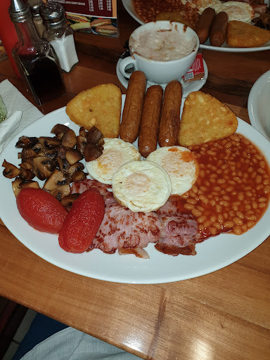 Read moreI got the bos Breakfast with a can of pop £10;50 was OK nothing special there was a funny taste to the sausages, 1 egg was hard 1 egg perfect what I didn't like was how the beans mushrooms tomatoe was on 1 side of the plate there's nothing worse than having mushroom grease, bean juice, & tomato juice all mixed in together the layout of the breakfast could be more thought about. if I'm honest i was quite enjoying it untill I got a crunchy bit in 1 of the eggs felt like egg shell might not be but that's what I thought .. the cafe itself is clean the service was good can not complain. Value you for money not really, way to many breakfast options would I go back again dont know , I have to be really hungry or the other food places would.have to be closed just a little Overpriced for what you get...