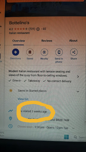 We booked a meal last Saturday923rd July) for a birthday treat, when we arrived were left at the enterance for around 10 mins, and this was quite early in the evening, finally shown to the table by the window, so quite pleased with this. We ordered food, pizzas for the boys, lasagna for me and Spaghetti Bolognese for my wife. When the meals arrived which was a little wait but can understand as freshly cooked the Pizzas were fine but the the meals for the adults were a big disapointment... the lasagna was covered in loads of cheese and had loads of oil over the top, basically tasted of cheese and not the pasta and meat, a big let down, possibly one of the poorest Lasagna i have tasted, the Spagetti was even worse, absolutly no taste at all, nothing in the sauce and tasteless. Whwn we came to order dessert, the waiter plonked down two chalk boards with about 4 choices, nothing like what was on the menu, when we asked for a ice cream sundee was told that was not available, my son pointed out that less than two tables from us a customer was eating a strawberry ice cream sundie, flustered the waiter said he could have Sticky Toffee pudding sundie, this seemed to be a concoction he was making himself, it came out swiming in coco powder and bits of Sticky toffee pudding, it tasted disgusting and my son would have been happy with the strawberry alternative which a lady had on a table adjacent to us which was supplied without any fuss!!. he left half of it. After then asking for the bill waited nearly 10 mins before i went upto the desk and reminded them i was waiting for the bill. Just glad that the birthday boy enjoyed his meal, having said that he eats almost anything as long as it is a plain pizza!! We left almost over two hours after entering which if we had taken the other booking that was offered to us at 8.30 we would have been leaving at around 10.45!! Lovely setting but shame that the food did not match up, its our first visit to the Portishead establishment, although they used to be in Nailsea and had a couple of very under par meals, there so i think this is one place when looking to go "Italian" we...